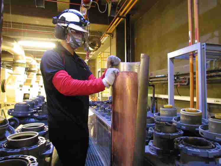 彩运网将废弃物转化成有效的工业或民生原物料,,,图为废铜液淬炼后再制成纯度极高的铜管