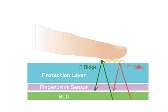 TFT 指纹扫描感测技术利用薄膜电晶体 (TFT) 当作光感测元件,,藉由非晶硅 (a-Si) 与低温多晶硅(LTPS)既有光电转换特性对不同波段光源进行吸收,,,,使感测 IC 读取阵列感测元件的光漏电差异,,,,转换成数位灰阶影像。。